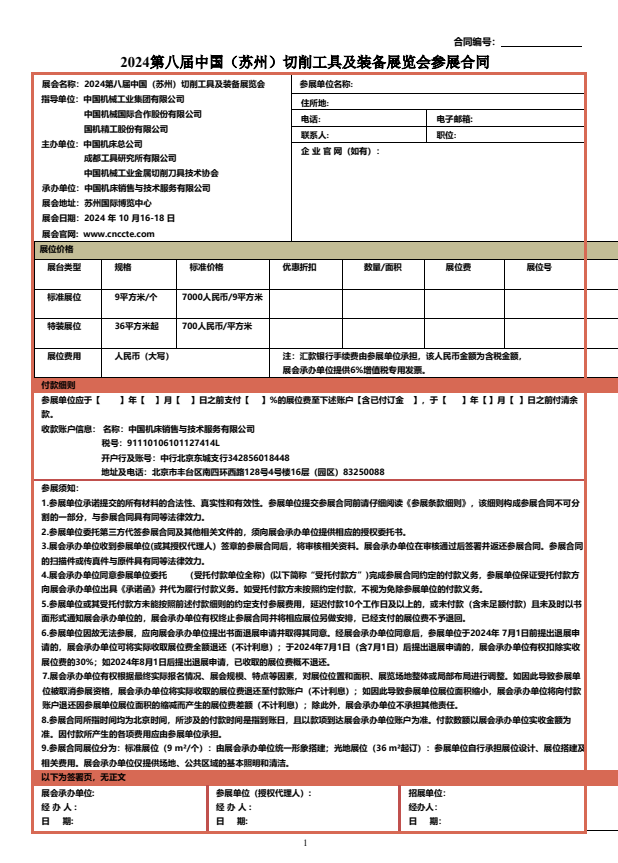 第八届中国(苏州)切削工具及装备展览会参展合同.docx 文件大小:42.27 KB