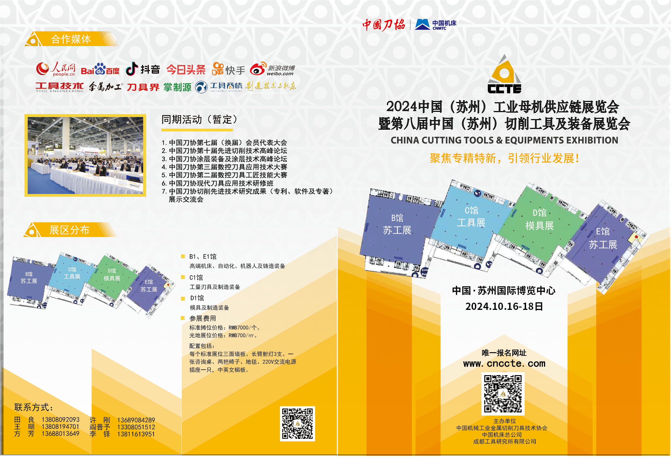 由新利手机下载安装(以下简称“新利18体育在线官网app”)、 中国机械国际合作股份有限公司、中国机床总公司、成都工具研究所有限公司共同主办的第八届中国(苏州)切削工具及装备展览会(以下简称“切削工具展”)拟于 2024 年10月 16-18 日在苏州国际博览中心举办,承办单位为中国机床销售与技术服务有限公司。