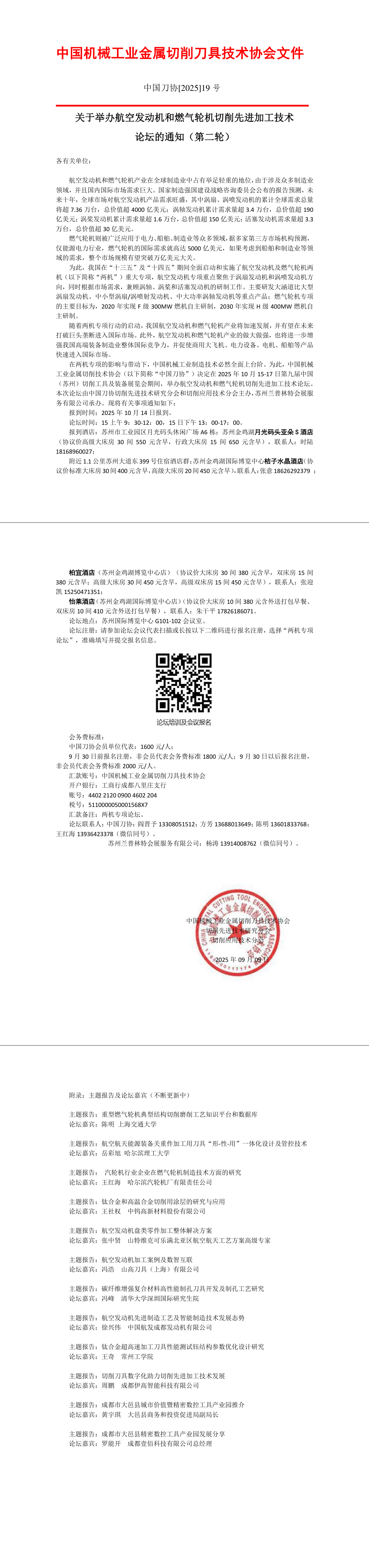 关于举办航空发动机和燃气轮机切削先进加工技术论坛的通知(第二轮)